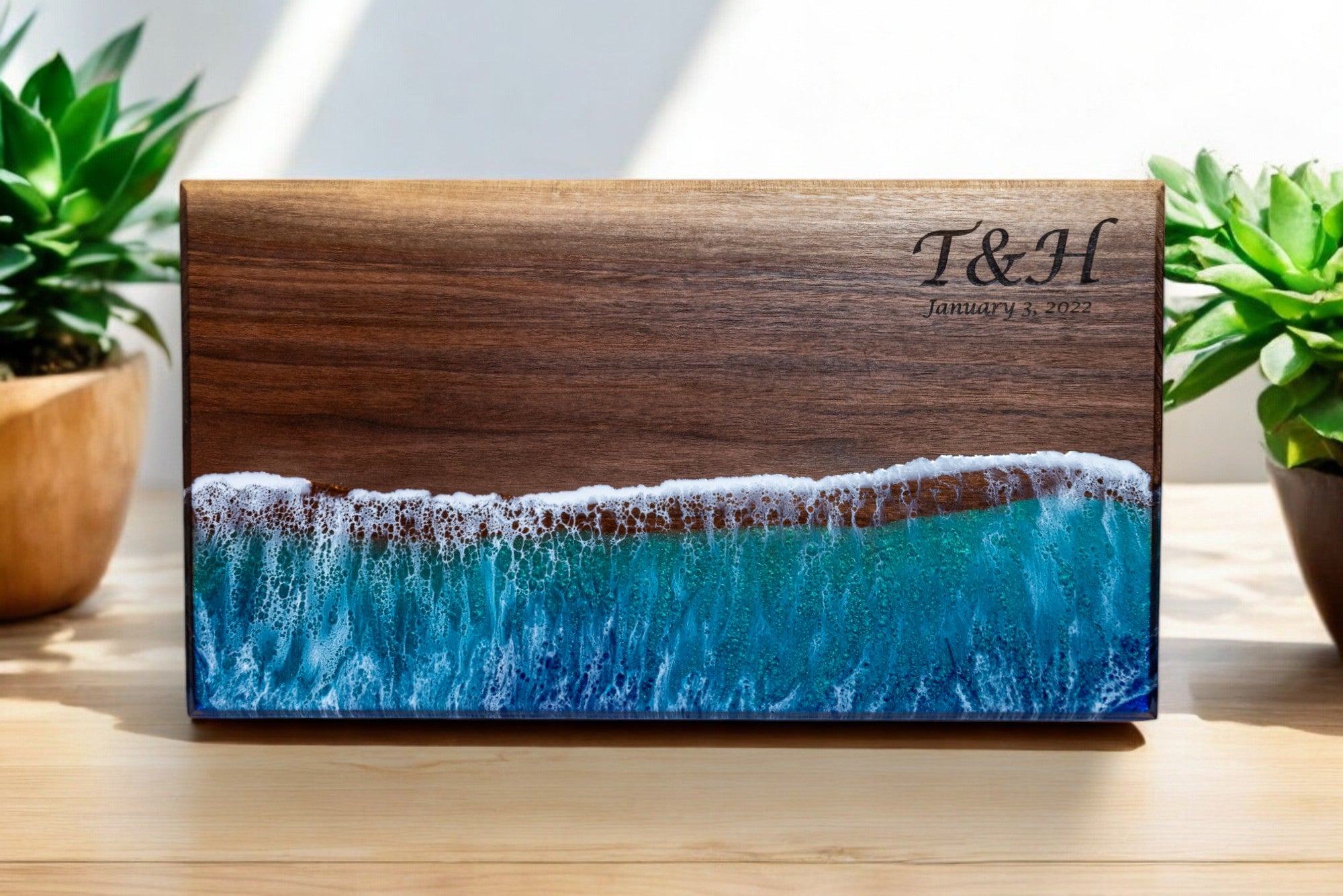 Handcrafted Ocean Wave Walnut Wood Charcuterie Board - Serving Platter