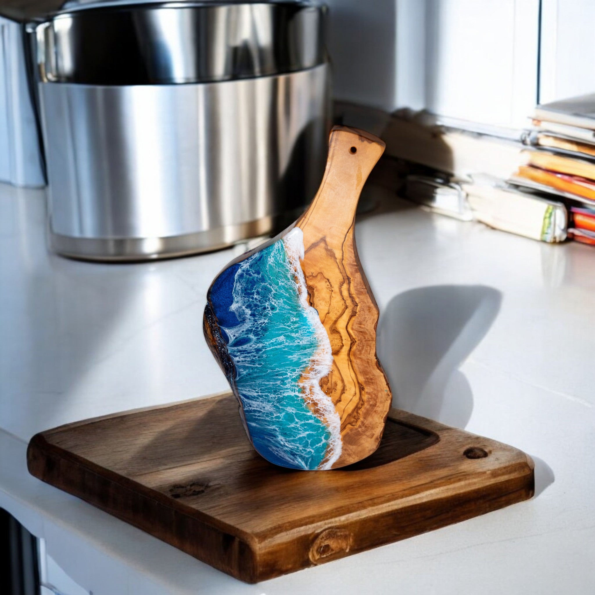 Handcrafted Ocean Wave Olive Wood Charcuterie Board - Serving Platter